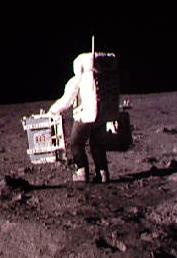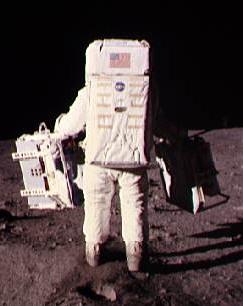 die EASEP Experimente zu ihrem Aufstellungsort. Oben auf seinem PLSS ist