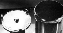 von Union Carbide. Der polierte Deckel reflektiert deutlich das