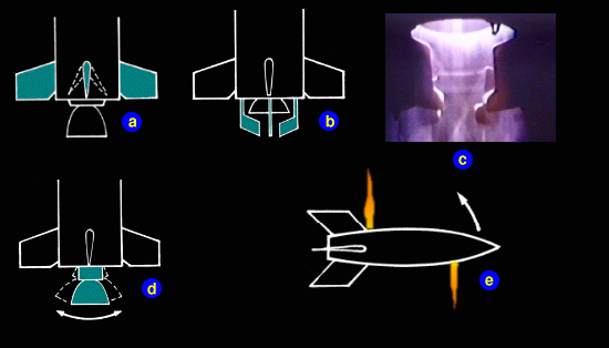 Abb. 1 - Unterschiedliche Methoden der Raketensteuerung. (a)